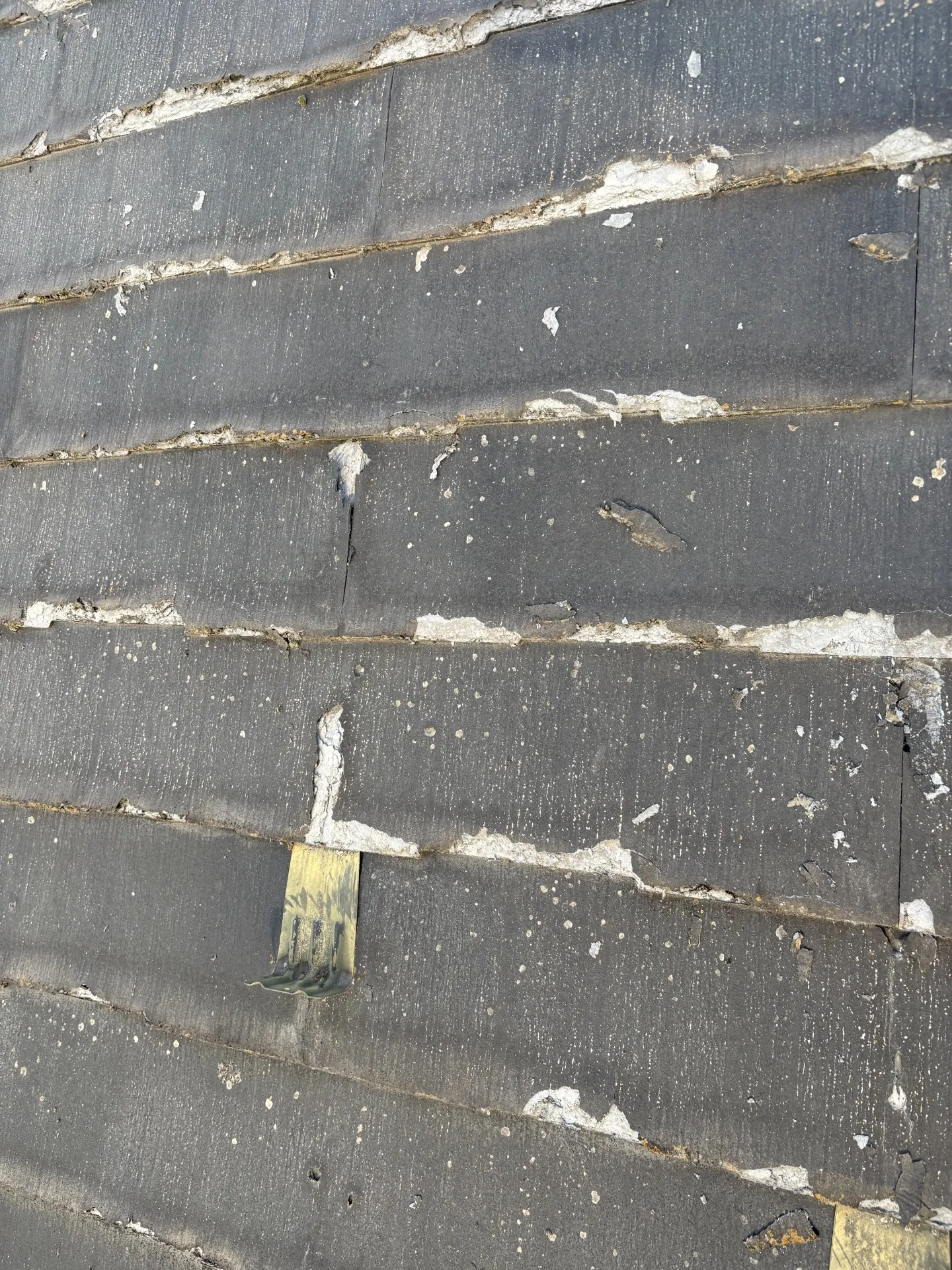 今から20年位前に流行った屋根になります。見ての通りミルフィーユ状に表面が剝がれてくるのが特徴です。